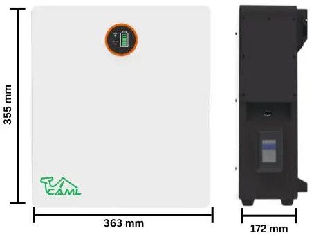 The CAML 10025 is a wall-mounted lithium battery designed for residential solar systems. Built with high-quality LiFePO4 cells, it offers a long cycle life and is compatible with a wide range of hybrid, on-grid, and off-grid inverters. The battery features a compact design for easy installation, flexible capacity, and safety mechanisms to protect against overcharging and short circuits. An LED display for real-time monitoring and easy communication capabilities provides a reliable and efficient energy storage solution for homes.