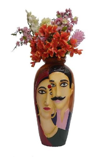 Wooden Color Couple Face Flower Vase, Width : 0.88 Feet