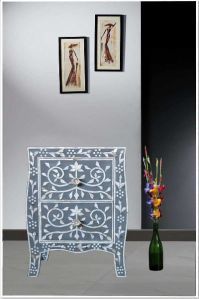 This sleekly designed grey mother of pearl inlay bedside table provides your bedroom with a dash of elegance and sophistication. The unique scroll motif design really pops off the canvas of mother....