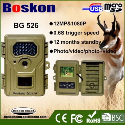 Contact SupplierBoskon guard new hunting camera bg526 is an infrared surveillance device,response by any movement of humans or animals monitored by a high sensitive passive infrared (pir) motion sensor, and then automatically captures high quality pictures (up to 12m pixels) or records video clips (1080p hd) .