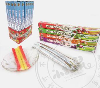We are offering 20g new double color sour gummy stick candy. Specifications item code: ivy--s213-4 name: 20g new double color sour gummy stick candy packing:20g*24pcs*12boxes spec.: cheap and nice tast.