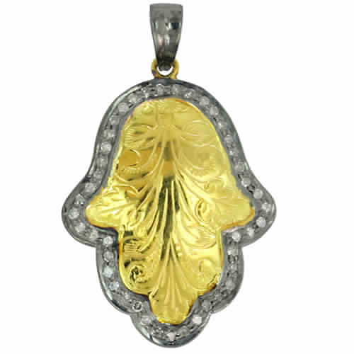 14K GOLD HAMSA HAND PENDANT, Size : 27x22 Mm