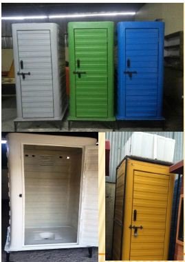ECO TOILET  WITH WATER TANK WITH BASIN          1) 01 nos. Indian Type Frp Pan.2) 01 nos. Louver window.3) 01 nos. FRP Booth.4) M.S stand supporting the structure.5) One Side smooth Finish.6) 01 nos. Tap fitted.  7) Thickness 2.5mm. 8) 200 Ltr Water Tank Provided.  9) FRP BASIN PROVIDEDÂ