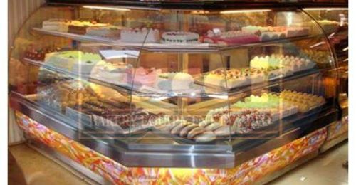 Product Specification • Beautiful 3 glass joint glass counter to display variety of snacks, sweets, cakes or pastries.• 2 - 3 glass shelves to display at various levels.• Powerful efficient cooling.• Stainless steel structure.• Granite or Marble top with same matching front panel.
