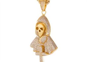 From his ghoulish stare and iconic robe, the Hip Hop Micro Pave Death Pendant carries over 137 CZ Stones and weighs approx 28 grams