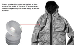 this special 3-layer waterproof seam sealing tape is a thermoplastic adhesive film applied to sewn seams of fabrics to prevent water from leaking through the seams.