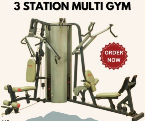 3 STATION MULTI GYM 3 Station Gym with 2 weight towers having weight stacks of 75 kgs each. Exercise Function - Leg Press, Leg Extension, Chest Press, Pec Fly, Lat Pull,Rowing, Knee raise, Push up stand ,situp, kicking etc. Durable powder coated finish. Ergonomic Design / Scientific Biomachanics. High Strength Pulley. Highly Flexible cable.