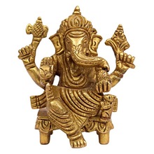 Brass God Ganesh Ji On Chair, Size : 3" X 2.5" (INCH)