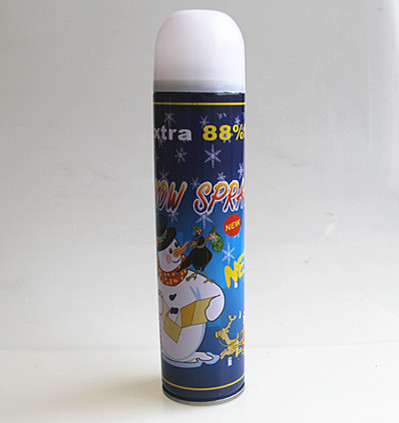 Contact Supplier300Ml Christmas Favores Foam Snow Spray: 300ml christmas favores foam snow spray is medium size for popular joker design foam snow spray. normal caps or trigger caps can be choice.the trigger is with safety pull,to avoid the pilling out of logistics. can be with color box packing, snow with lemon perfume,NO bad smelling,NO harm to body,NO dust to clothes. be used in many different kinds party celebrations, such as wedding, party,new year,Christmas and so on. Features: -Chemical component: resin.-Driven: compressed air. -Power bottle: steel bottle. -Thesnow would disappear automatically. -Assortment: inflammable , nonflammable , environmental protect Caution: -Donot place it upside down when spray. -Donot contact to eyes. -Donot swallow, must keep away of sunlight. -Donot expose to temperatures above 50 ℃(120F) ProductsSpecification: Descraption: 300ml Christmas Favores Foam Snow Spray Can material: Tinplate Can size: 52*190MM Capacity: 300ml Net weight: 80g or customization Packing 48pcsCtn  or with color box packing can choice Measures: 45*29*24cm Image:  Remark: We accept customization of any volume bottle and any weight of inner contents.
