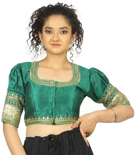 Dark Green Raw Silk Blouse, Size : 32, 34, 36