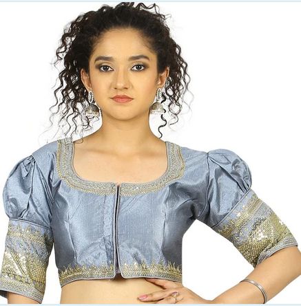 Grey Raw Silk Blouse, Size : 32, 34, 36