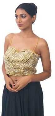 Sleeveless Cotton Mirror Work Yellow Blouse, Size : 32, 34, 36