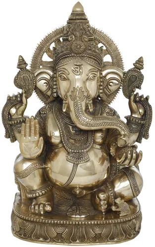 Golden 35 Kg Brass Ganesha Statue, For Interior Decor, Packaging Type : Wooden Box
