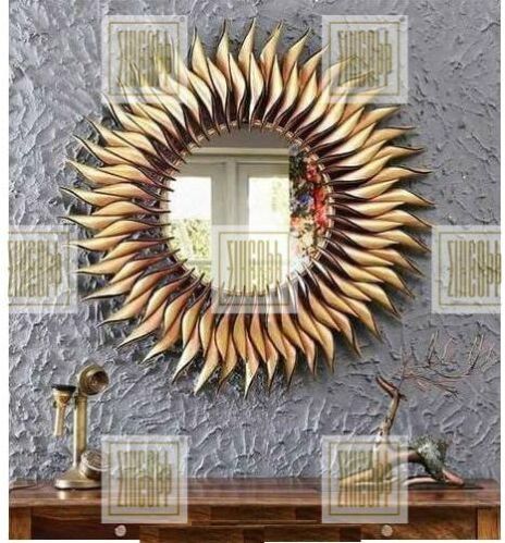 32 inches sunburst iron gold mirror a beautiful piece of wall decor suitable for home office hotel use.Made in India