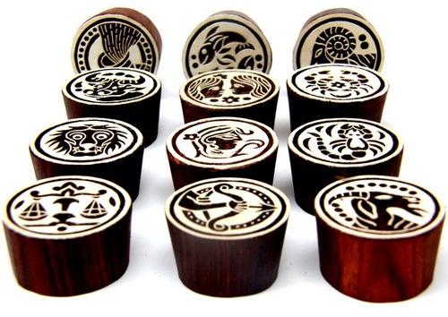 Zodiac Sign Wooden Stamp, For Textile Purpose, Color : Brown