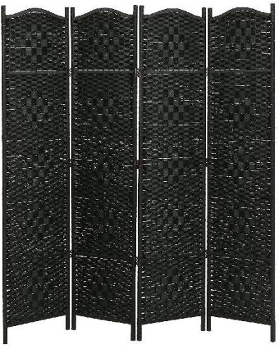 A freestanding room divider made of black paper rattan in an stylish woven designFeatures 4 panels connected to one another by hinges that allow you to fold or extend the divider Products Dimensions: 170.2 x 1.3 x 160 cm ; 4.7 Kg |
