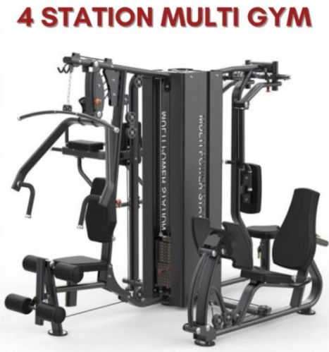 4 STATION MULTI GYM 4 Station Gym with 3 weight towers having weight stacks of 100 kgs each. Exercise Function - Leg Press, Leg Extension, Chest Press, Shoulder Press, Pec Fly, Lat Pull, Rowing, and all High/Low Pulley Exercises. Comfortable seat pads and all the weight stacks attached at right angle for maximum space saving when placed in the corner. Durable powder coated finish. Ergonomic Design / Scientific Biomachanics. High Strength Pulley. Highly Flexible cable.