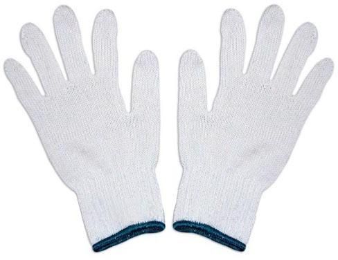 White Cotton Knitted Seamless Gloves, Pattern : Plain