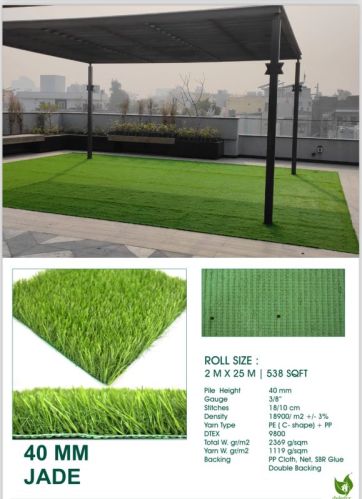 40 Mm Jade Artificial Grass, For Outdoor, Color : Dark Green, Light Green