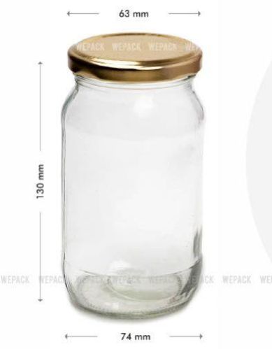 Clear 400ml Round Glass Jar, For Jam/caviar, Pattern : Plain