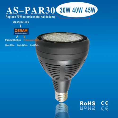 We offer 40w/45w Ce/rosh Osram Par30 Led Light. 1ã€The unique three-dimensional optical design, professional commercial lighting tailored. 2ã€Imports the LED dedicated Maglev fan - ultra-quiet life (70,000 hours). 3ã€Overtemperature protection: more than 90 degrees automatically start protection, return to work less than 75 degrees. 4ã€Professional to replace PAR30 ceramic metal halide. 5ã€Applicable to all PAR30 light source of any Light Stand.