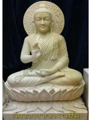 Creamy 41 Inch Marble Buddha Statue, For Worship, Pattern : Carved