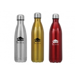 We are supplier of this product. Price - Rs.845.00 FEATURES: The OLIVIA range of bottles are made using proven VACUUM Technology. The Double walled bottle with vacuum provides excellent insulation medium keeping beverages hot or cold for hours. Made from high quality FOOD GRADE 188 Stainless Steel 304 offering best durability and long life of bottle. Color : STEEL, GOLDEN, MAROON. STORAGE: Keep the bottle lid open when not in use to prevent strong odor. Availability: 60 Model: