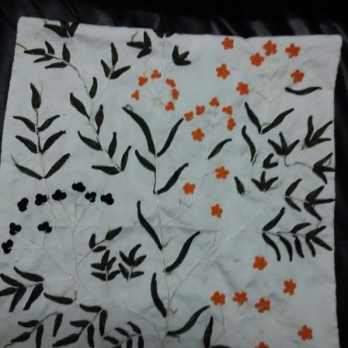 Beautifully embroidered black and white designs of leaves and flowers in black and red giving an attractive appearance, minimum order quantity is 400 pieces per style, size varies according to the requirement.