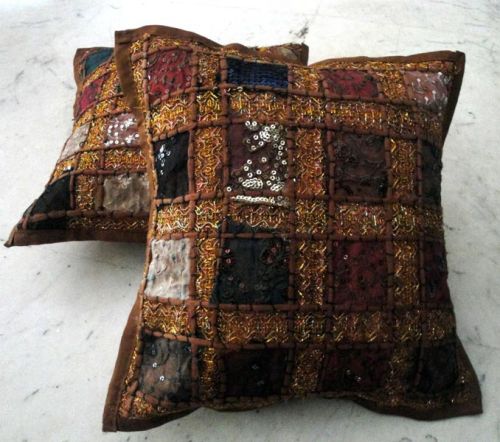 - A Unique Pair of Cushion Cover With Indian Sari & Sequin Beaded PatchworkDimension 16" x 16" (approx.)