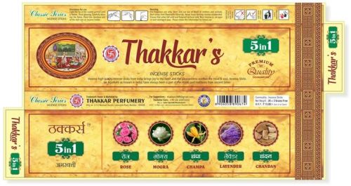 We are a notable Manufacturer, Exporter and Supplier of 5 in 1 Incense Sticks from Mumbai, Maharashtra. The Incense Sticks we provide are made using high quality raw materials and have long burning life. The Thakkars 5 in1 Incense Sticks we bring forth are the best room fresheners, which fill the rooms with exotic fragrance. Our team of experts makes sure the Incense Sticks are in accordance with the international standards. For price quotes, stay assured as we offer the best in market.