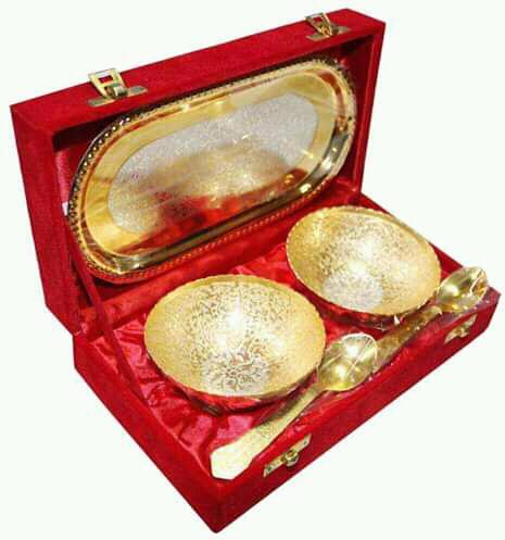 5 Pcs Silver and Gold Plated Bowl Set With Red Velvet Box?