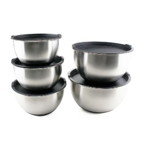 Contact SupplierThis set of mixing bowls is made using the highest quality stainless steel and silicone. Nontoxic materials that don`t affect the taste of your food and will maintain their unrivaled characteristics even after numerous washes!And Because of their unique sizes you can use them as storage bowls, fruit bowls, popcorn bowls, serving bowls, salad bowls, ingredient bowls, cereal bowls, cookie bowls and the list goes on! This remarkable set of lightweight mixing bowls is made with non-slip, silicone bottom for easy mixing, has rounded edges that ensure better sealing and are top rack dishwasher safe. In addition, each bowl features etched markings from the inside, so you can instantly measure the ingredients you are mixing! Item name:5 Piece Mixing Bowls With Lids Material:stainless steel Size: 1.5, 2, 3, 4 and 5 quart Feature:Food grade Logo:Customized logo MOQ: 3000pcs Sample time: 3days Production time: 35-40days after pre-production sample
