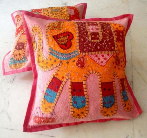 We are offering 5 pink red handcrafted cushion covers.a pair of indian handcrafted applique patchwork embroidered traditional elephant throw pillow cases toss cushion covers. If you are fashion savvy, want to be unique, different and set a trend, these are definitely for you. Spruce up your room with this spectacular masterpiece of work. A look at them makes us realize the painstaking & laborious work involved, not to mention days that one piece takes.