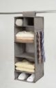 material:twilight(polyester, 600d/300d, pe coating) trim grey:75g non-woven. size:12''w x 12''d x 34''h. weight: 0.89kgs top with 3mm mdf (p2) on the top,interlayer with 2.5mm half paperboard,bottom with 2.5mm full paperboard, 2pec 5.00mm chrome wire hook.organizer, using in wardrobe, make your wardrobe simple and orderly. .