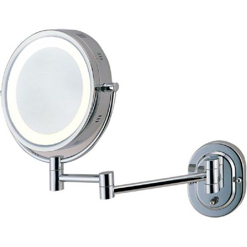 Contact SupplierUnique  this is a unique mirror that has a thick frame, the mirror is lighted, so many small holes are designed on the frame for better heat dissipation. The surface of the mirror is chrome-plated and looks shiny. It has many functions, so it can also be called makeup mirror with lights, wall makeup mirror, lighted shaving mirror, magnifying wall mirror and wall mounted shaving mirror. It has two rocker arms, which can be freely adjusted according to the user's angle and orientation. The connection between the rocker arms is very precise and detailed, not loose and tight, and it is very smooth in use. At the same time, it can save space. The two sides of the mirror are regular and 5 times magnification, both sides are very useful, whether you want to see the whole face makeup or the local details, it can meet you.