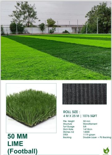 Dark Green 50 Mm Straight Lime Artificial Grass, For Outdoor, Football Field, Size : 1076 SQFT
