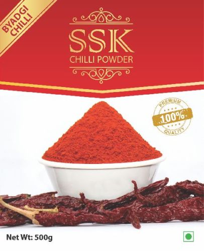 SSK BYADGI Chilli Powder is made from the finest grade chillies from Byadgi. Byadgi chillies are known for medium pungency(Medium spicy) which is good for our health. These chillies are famous fot its dark red color and great aroma taste which lasts longer.Properties : Stemless chillies Powder Medium Spicy Rich in color and aroma Scoville Heat Unit -SHU measure around 23000 Package Type : Available in 5Kg and 10Kg Carton Boxes 250g Box Packing 500g Box Packing 1000g Box Packing