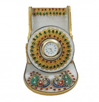A Masterpiece in marble. Marble Mobile Stand with Watch / Clock. These marvelous handcrafted artifacts from Rajasthan carved out of the best marble of India and are the distinguished piece of art to enhance the beauty of your interiors and add brilliance to your home and office decor. A perfect gift for any occasion.