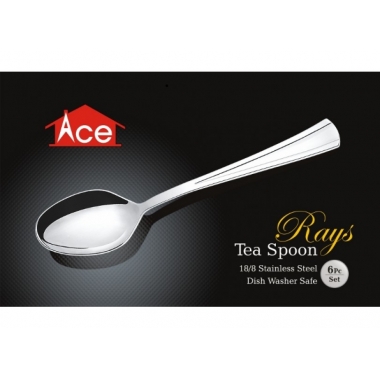 We are supplier of this product. Price - Rs.280.00 India's most popular & trustworthy brand "Ace" now presents Ray's Tea Spoon 6 Pcs. Set with Permanent quality assurance. Features : It is made of the best quality Austensitic 188 Stainless Steel having correct combination of perfect shape & size. It is Dish Washer Safe. Length: 130mm Elegant yet simple design Mirror polish cutlery giving premium finish 100% Satisfaction Guarantee Availability: 25 Model: 5301 Manufacturer: Ace