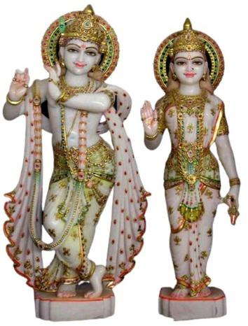 30 Inch Marble Radha Krishna Statue, For Worship, Temple, Pattern : Printed