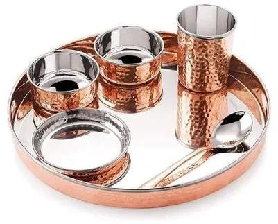Round 6 Pcs Copper Thali Set, For Serving Food, Pattern : Hammered