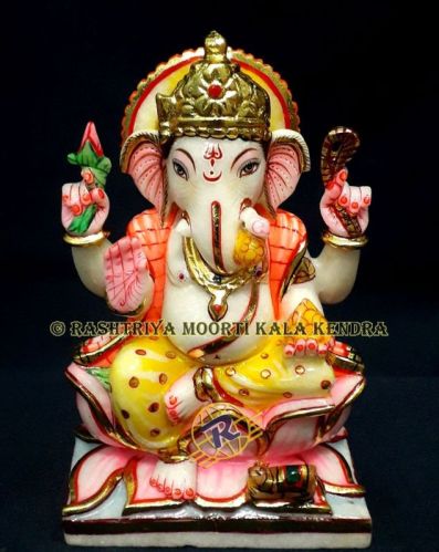 Multicolor 7 Inch Marble Ganesh Statue, For Worship, Packaging Type : Thermocol Box, Carton Box