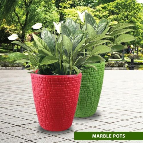 Green 8 Inch Marble Flower Pot, For Garden, Shape : Round