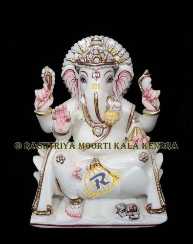 Multicolor 9 Inch Marble Ganesh Statue, For Worship, Packaging Type : Thermocol Box, Carton Box