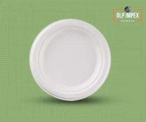 White 9 Inch Round Sugarcane Bagasse Plate, For Serving Food