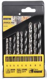 We are offering 9 Piece Mixed Drill Bit Set. BCX09S 9pcs 8/80sets High Speed Drill Bits:Twist drill bit made of high speed steel.Twist drill bit and point ground 135° drill bit tip, split point manufactured to DIN 1412 C Masonry Drill Bits:Quality Tungsten Carbide tips. Steel body sand blasted.Brad Point Drill Bits,Quality steel body.Precision-ground drill bit tip High Speed Drill Bits: 5, 6, 8mm Masonry Drill Bits: 5, 6, 8mm Brad Point Drill Bits: 5, 6, 8mm.