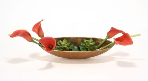 9906# - Rust Calla Lilies in Low Brass Tray Container Material metal Dominant Color Rust Dominant Color Family Reds Shipping Weight 11 Ships