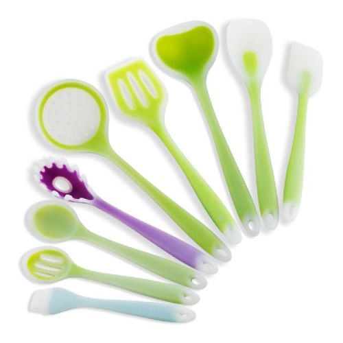 Contact Supplier9PCS Heat Resistant Silicone Cooking Utensil Set Silicone Utensil Set Includes a bursh,a soup ladle, a solid spoon, a slotted spoon, a paghetti server,a slotted spatula, a skimmer ,a salad spoon and a scraper. Best quality material chosen that would last life time - carefully crafted with highest standard FDA approved and BPA free silicone & durable nylon inner core. By using top-graded material, our kitchen utensils set provides perfect balanced weight, it's easy to grip and very practical for cooking All tools are heat resistant up to 240 degree celsius or 464 degree fahrenheit. Silicone Cooking Tools are made from one-piece silicone, so they are stain & odor resistant, also dishwasher safe. The non-stock silicone utensils set will protect your cookware completely The silicone cooking utensils set is made in stylish contrast color. Unlike those colorful ones, our set will actually bring elegant into your kitchen. With our secure and stylish packaging, it will make a great gift for anyone. Item name: 9PCS Heat Resistant Silicone Cooking Utensil Set Material:Silicone and nylon for function part, silicone and nylon for the handle Feature:Food grade MOQ: 3000Set Sample time: 3days Production time