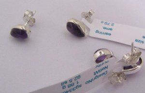 9x6 Pear Cab Stud Silver Earring, Purity : 92.5