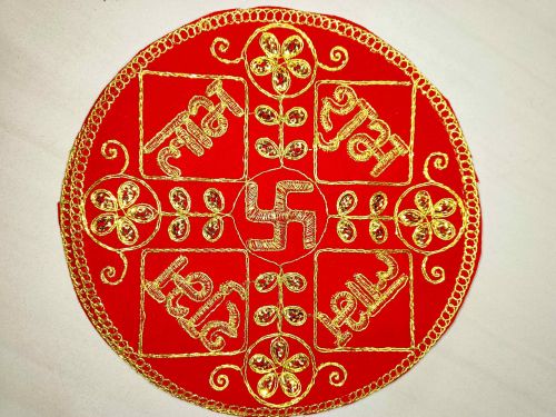 9x9inch Red Velvet Embroidery Pooja Aasan?